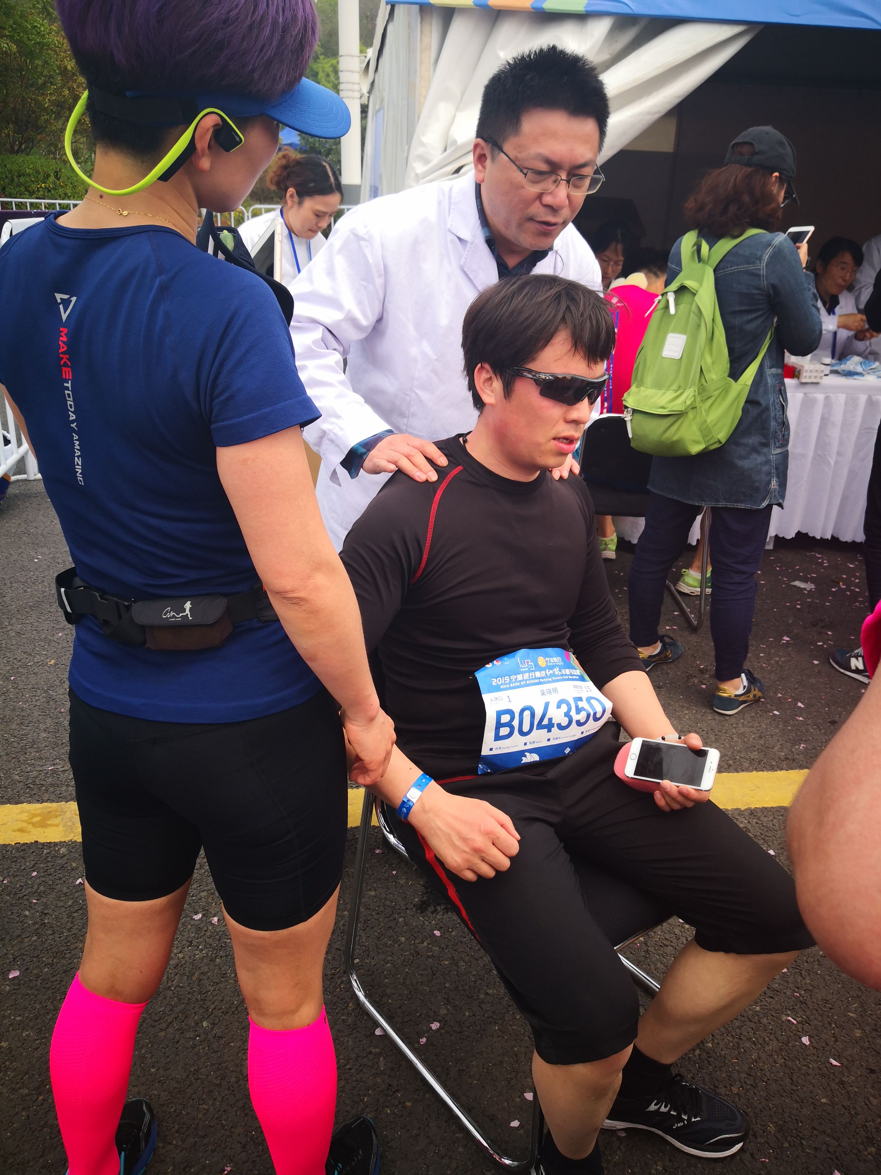 马拉松的起点和终点是事故高发地带,由我院医护人员参与的第1、13现场救治小组,在起(终)点羊山公园参与救治,另外第2、7小组跟随救护车提供保障。这4组医疗保障组由骨科、急诊科以及重症医学科医护人员组成,共计为200名 受伤选手提供现场救助,有擦伤、扭伤以及轻微中暑的患者得到及时的救治和转移。