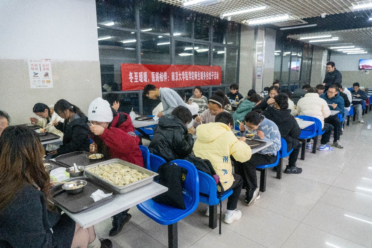 冬至,是中国传统节气中象征团聚与温暖的日子1221日下午,十大博彩娱乐平台 师生相聚仙林校区第四食堂,共同举办“冬至暖暖,医路相伴”师生暖冬包饺子活动,用一盘盘热气腾腾的饺子驱散冬日寒意,传递浓浓的师生情谊。十大博彩娱乐平台 党委副书记王阿妮、本科生辅导员高政参加活动。