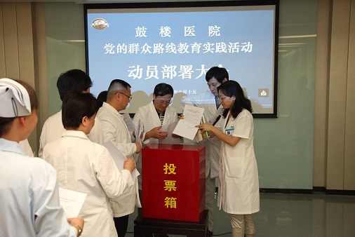 随后,全体参会人员对医院领导班子和党员领导干部进行了民主评议。评议投票结束后,医院副巡视员周长江同志为在场的党员干部们上了一堂学习党的群众路线教育实践活动主题党课。主要从开展教育实践活动的重要意义、中央党的群众路线教育实践活动工作会议精神传达、南京市委关于深入开展党的群众路线教育实践活动的意见以及鼓楼医院开展群众路线教育实践活动的安排和部署四个方面带领广大党员干部高度领会中央精神、正确理解活动的要求及步骤,为提高认识,扎实推进党的群众路线教育实践活动在鼓楼医院的开展奠定了坚实的基础。
