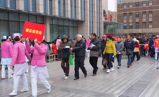 如何解决“看病难、看病贵”,是社会关注的热点话题。在义诊活动现场,医院肾脏科创新实施的“分级诊疗”新模式,引发了媒体的广泛聚焦。接受媒体采访的医院史兆荣院长、陈忠良政委向记者们介绍,医院采用的具体分诊方式为,首先在门诊进行相关初诊检查,初诊医生将根据病人的初诊检查结果,将病人转交给上一级的医生。如肾脏病就有糖尿病肾病、IGA肾病等具体的分类,患者在初诊结束之后,可以根据病情的具体情况进入相关具体病种的‘诊疗系统’。如此一来,将原本的“住院检查”挪到了门诊进行,“砍掉”了无效住院日.目前,肾脏科的平均住院天数已经缩短到了9天以内。