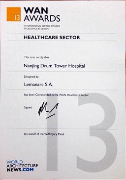 近日,鼓楼医院南扩新大楼在2013 年国际“World Architecture News” (世界建筑新闻)奖评选中,从1300份申请中脱颖而出,荣获该奖项“医疗项目”中的优胜奖,这是在此次评选中唯一获奖的中国项目。世界建筑新闻创办于2005年,是目前世界上排名第一的建筑界新闻媒体,世界建筑新闻奖为国际性竞赛奖项,其设立旨在促进建筑设计发展。