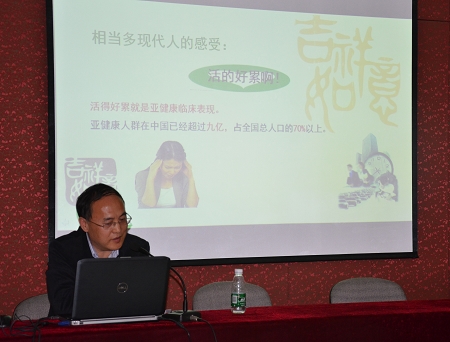 4月14日,我院特邀保健专家、市中西医结合医院张明副院长给职工进行亚健康状态的预防与保健讲座。