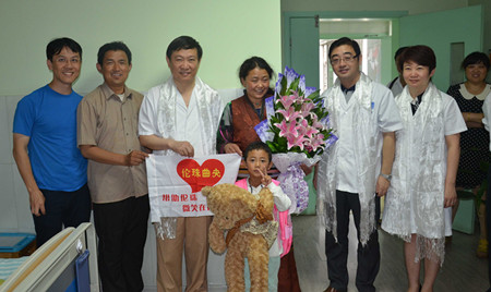 7月4日,市民族宗教局副局长朱黎黄、市残联工作人员和胡勤刚院长、王磊书记、周楠副书记看望了在我院三病区就诊的5岁藏族女孩伦珠曲央,祝愿她早日康复迎接美丽人生,并向倾力救治小伦珠的医护人员和热心人士表达诚挚感谢。
