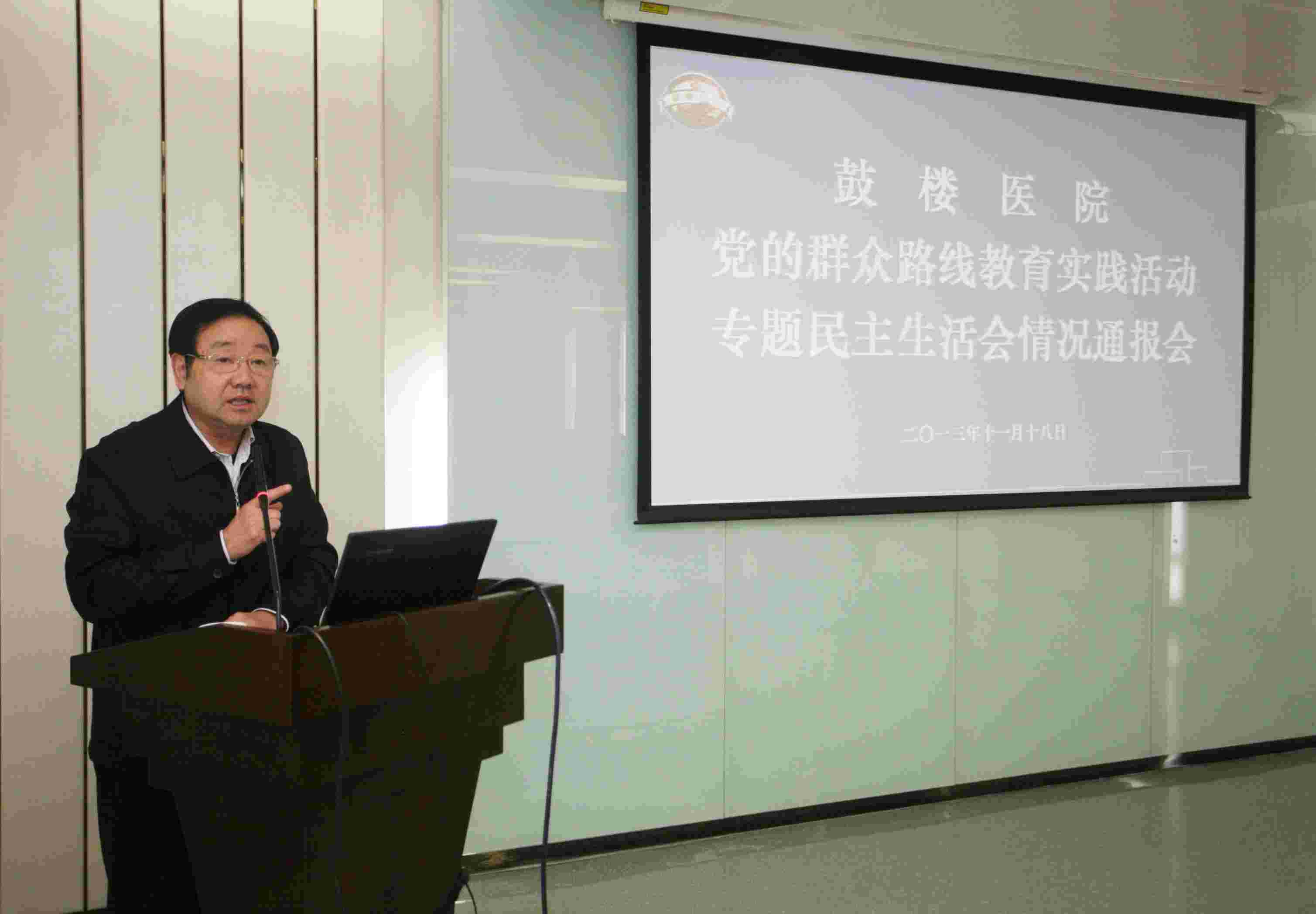 11月18日下午,医院在会议中心3号学术报告厅召开了党的群众路线教育实践活动专题民主生活会通报会。会议由丁义涛院长主持,市委督导三组成员、医院领导班子,各党总支书记、各党支部书记、行政处级以上干部、部分职能部门负责人以及近5年退休的领导班子成员约70人参加了会议。