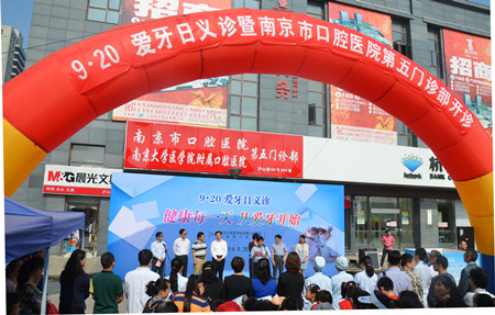 9月20日上午,我院在南京市建邺区庐山路94号(金陵中学河西分校西门对面)举办“9.20爱牙日义诊暨南京市口腔医院第五门诊部开诊”活动。社区群众、南京日报小记者以及相关领导等200余人来到现场,共同推动口腔健康宣教和促进活动。