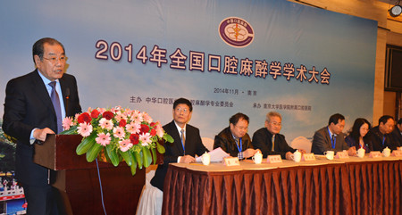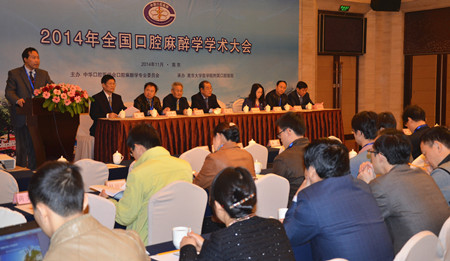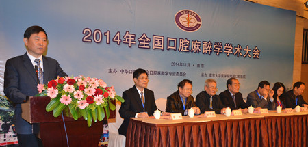 附属口腔医院院长胡勤刚教授分别致辞。中华口腔医学会口腔麻醉学专业委员会前任主任委员朱也森教授、候任主任委员姜虹教授以及副主任委员刘可斌教授、刘瑞昌教授出席会议并在主席台就坐。开幕式由中华口腔医学会口腔麻醉学专业委员会副主任委员、娱乐平台-十大博彩娱乐平台
