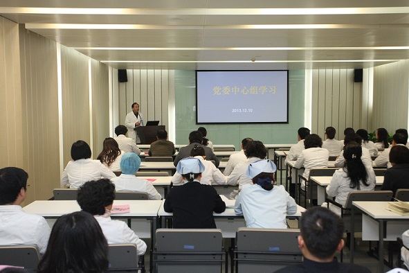 2013年12月10日下午四点,鼓楼医院党委召开中心组学习会议,认真学习了党的十八届三中全会精神。院领导、中心组成员及部分科室科主任、护士长参加了本次学习。