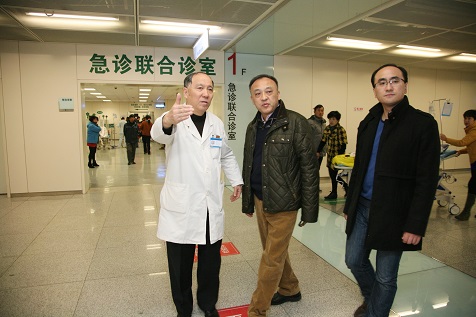 移植外科与肝胆外科终身教授、2005年国际肝移植学会执行主席、南京医科大学杰出校友吴幼民教授专程来到南京鼓楼医院访问,在丁义涛院长的陪同下兴致勃勃的参观了我院新医疗大楼,并与我院肝胆外科、消化科、肿瘤科、放疗部、病理科、核医学科等组成的协作组就新辅助放化疗联合肝移植治疗不可切除肝门部胆管癌研究项目展开了热烈的研讨。