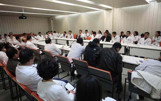 现场气氛轻松愉快,专家们纷纷发言,各抒己见,在学科建设、人才培养、科研工作、后勤保障等方面提出了一系列中肯的建议和意见。临床专家们与职能处室负责人就人才培养与引进、耗材控制与管理、尖端学科的发展等热点问题进行了深入、全面的沟通和探讨。大家一致表示,在新的一年里将尽心竭力为医院的持续、快速发展贡献力量。