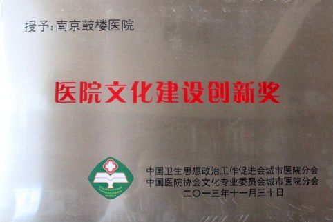 医院的文化建设走在了全国前列,取得了良好实效,受到卫生部和省市领导以及社会群众的一致好评。医院相继荣获“江苏省卫生系统卫生文化建设先进单位”、 “文化建设先进集体”等荣誉称号。此次荣获“医院文化建设创新奖”也体现了社会各界对鼓楼医院文化建设实践的肯定和认可。