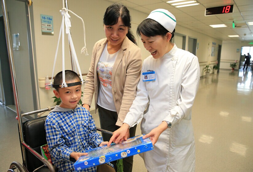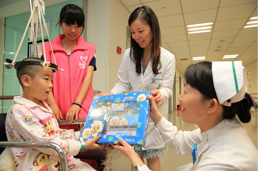 “六·一”国际儿童节是孩子们共同的节日。为了让很多躺在病床上的孩子也能欢度“六·一”儿童节,我院组织志愿者为脊柱外科的住院小患者送上节日的祝福。