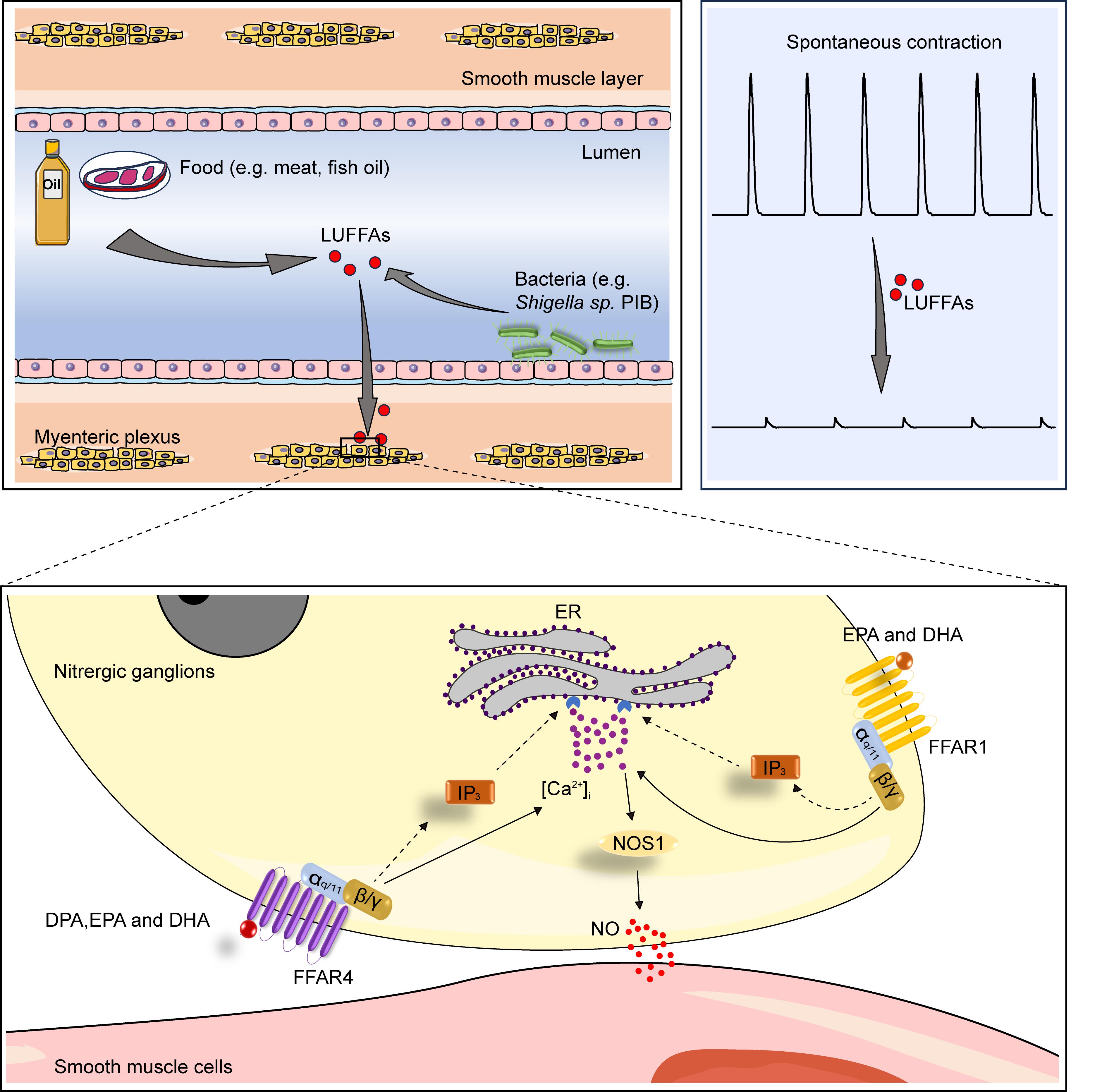 图1. 长链不饱和脂肪酸调控肠动力的机制