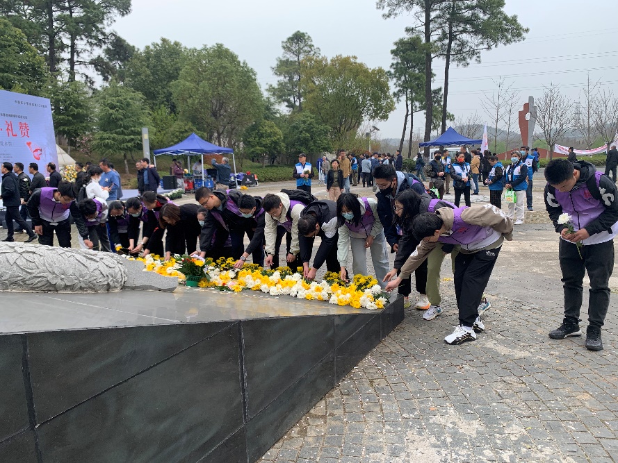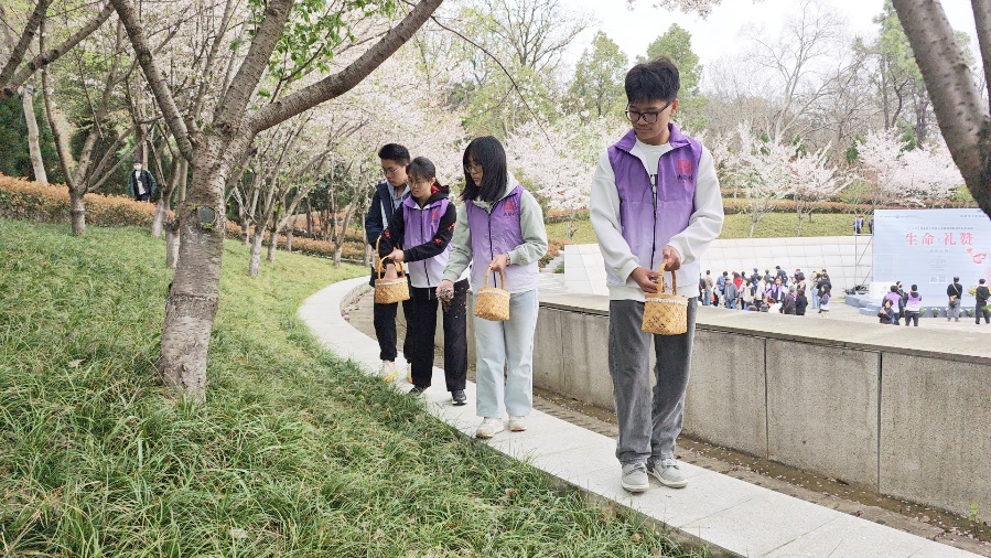 随后,全体人员依次来到纪念碑前,怀着沉重的心情敬献菊花,鞠躬表达深深的缅怀之情。最后,四位娱乐平台-十大博彩娱乐平台 志愿者手提篮子,怀着崇高的敬意,将写满人们对南京捐友的感激与祝福的纸张粉碎,与营养土一起抛在纪念林中。