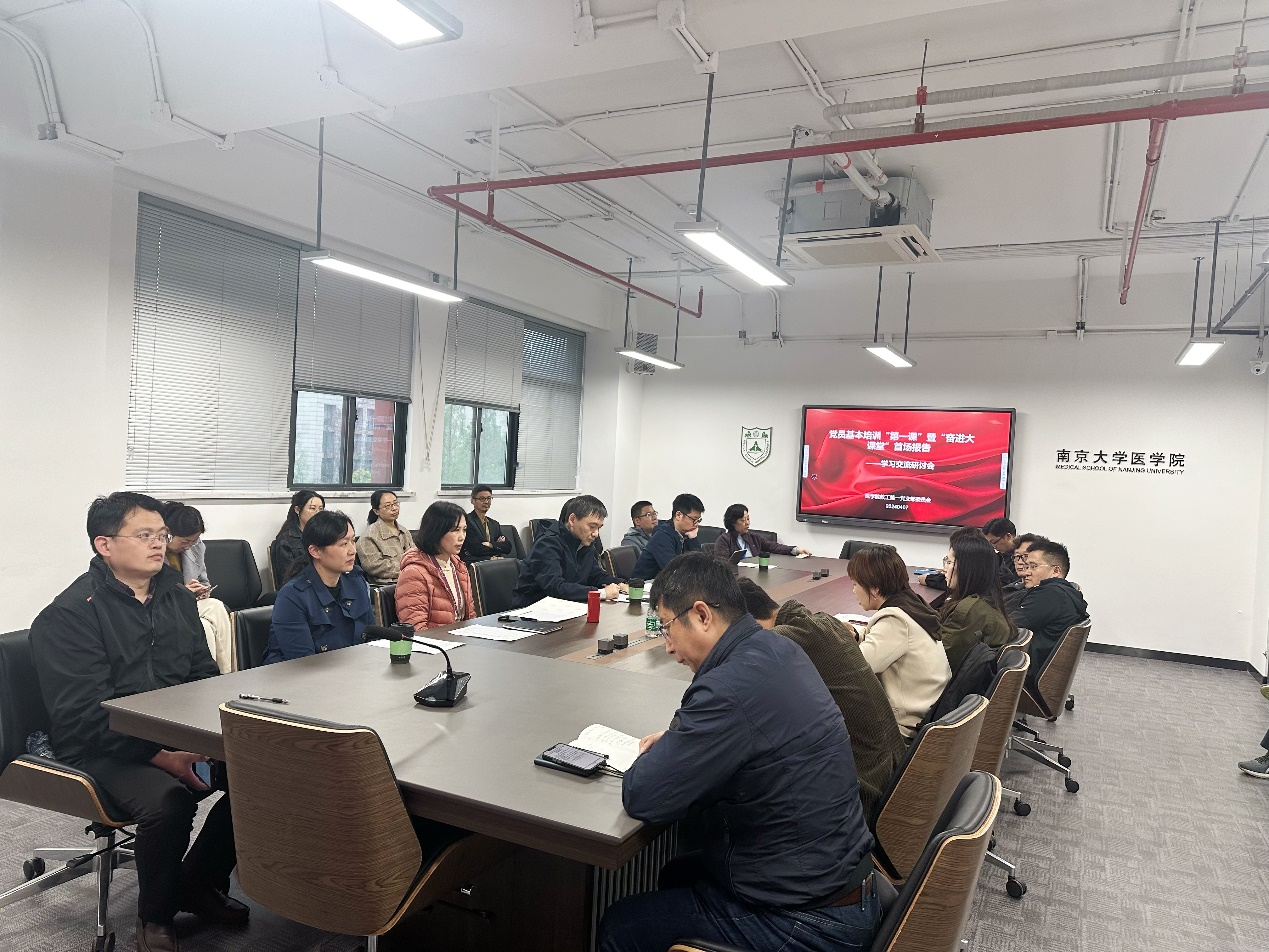 4月7日下午,十大博彩娱乐平台 教工第一党支部在基础医学科研中心会议室就江苏高校师生党员基本培训“第一课”暨南京大学“奋进大课堂”首场报告会的学习内容展开研讨。会议采用重点发言与深入研讨相结合方式,组织党员围绕培训内容,结合自身工作经历进行交流讨论。一支部在会前召开支委会讨论决定,请七位年轻教师作为重点发言人,一方面请他们结合自身工作分享学习体会,另一方面也希望通过这次活动加深支部党员对这些青年人才的认识,使他们更快融入到十大博彩娱乐平台 的发展中,进一步增强支部的凝聚力。会议由十大博彩娱乐平台 教工第一党支部书记李冬梅主持。