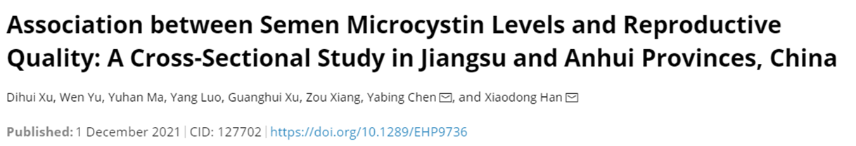 目前,全世界范围内约有8-12%育龄期夫妇不能正常生育,其中由男方因素引起的约占50%。精液质量下降是引起男性不育的重要因素,半个世纪以来,世界范围内男性精子质量下降超过50%。大量研究表明,环境因素与男性精液质量下降密切相关。韩晓冬教授团队的流行病学调查研究首次证明低浓度MCs暴露可引起男性精液质量下降,这为深刻理解MCs 对人群健康的危害具有重要意义,为决策机构提供了可靠依据。