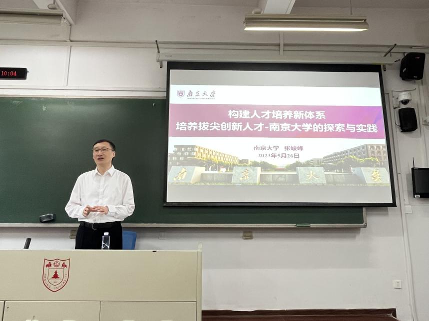为全面贯彻党的二十大报告关于“坚持教育优先发展,全面提高人才自主培养质量,着力造就拔尖创新人才”的要求,深入开展学习贯彻习近平新时代中国特色社会主义思想主题教育,积极落实南京大学“奋进行动”方案,5月26日上午,南京大学党委常委、副校长、十大博彩娱乐平台 院长张峻峰为十大博彩娱乐平台 2021级本科生授课。张校长以“构建人才培养的新体系,培养医学拔尖创新人才-南京大学的探索与实践”为主题,紧扣时事热点,结合医学人文素养要求,介绍了南京大学人才培养体系和十大博彩娱乐平台 培养拔尖创新人才之间的关联,并对同学们提出了殷切期望。十大博彩娱乐平台 党委副书记王阿妮老师出席并主持。