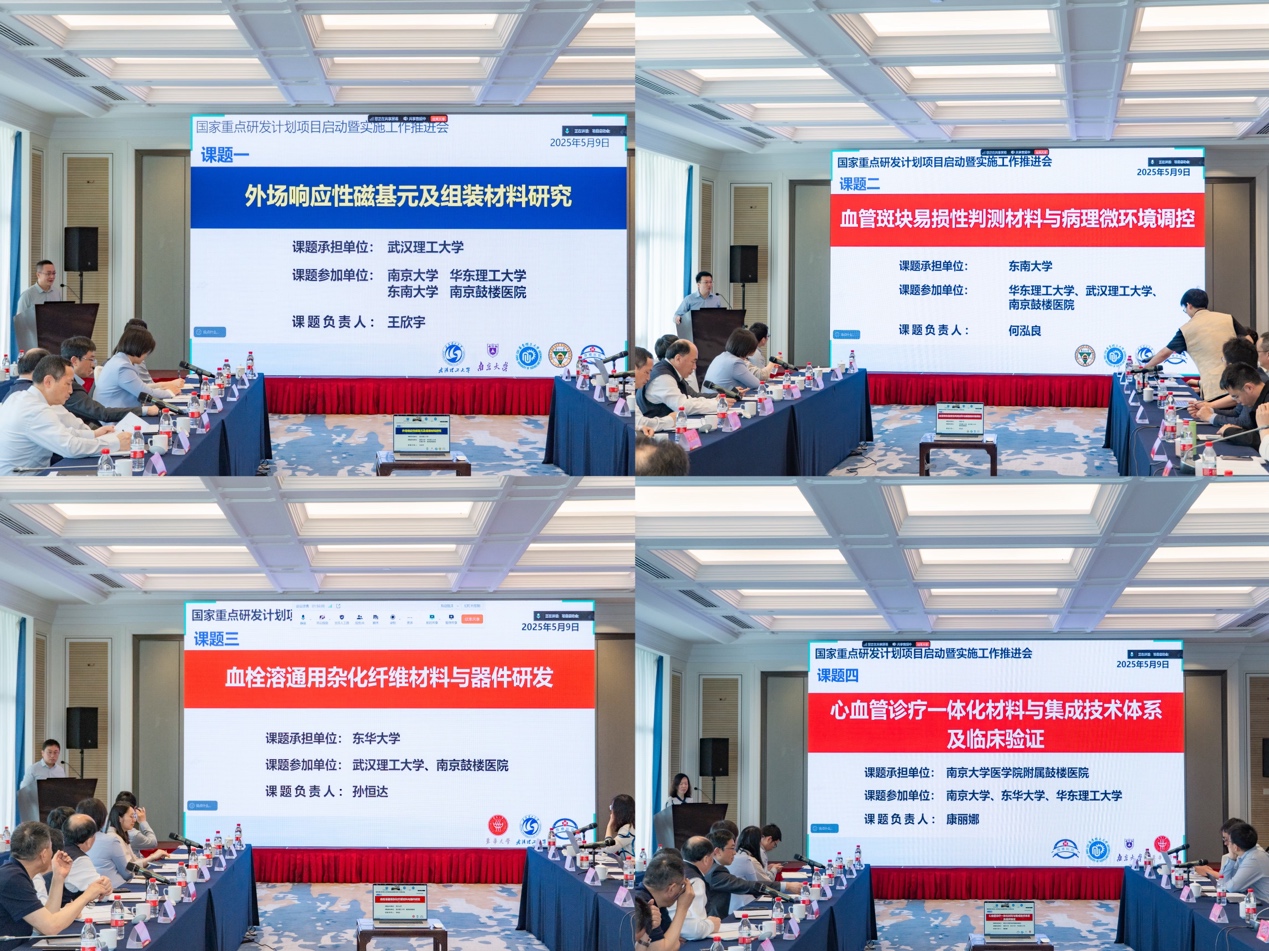 2025年5月9日,由中国科娱乐平台 院士、娱乐平台-十大博彩娱乐平台 顾宁教授牵头主持,联合武汉理工大学、东华大学、华东理工大学、东南大学及娱乐平台-十大博彩娱乐平台 附属鼓楼医院共同承担的,国家重点研发计划“工程科学与综合交叉”重点专项“心血管疾病诊疗一体化材料”项目启动会暨实施工作推进会在南京顺利召开。此次会议汇聚了来自全国多所高校、科研机构及医疗机构的专家学者,通过线上线下结合的方式,深入探讨了项目的实施方案和取得的阶段性进展。