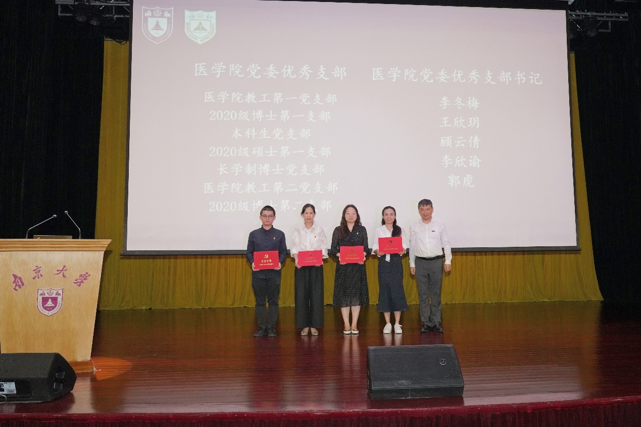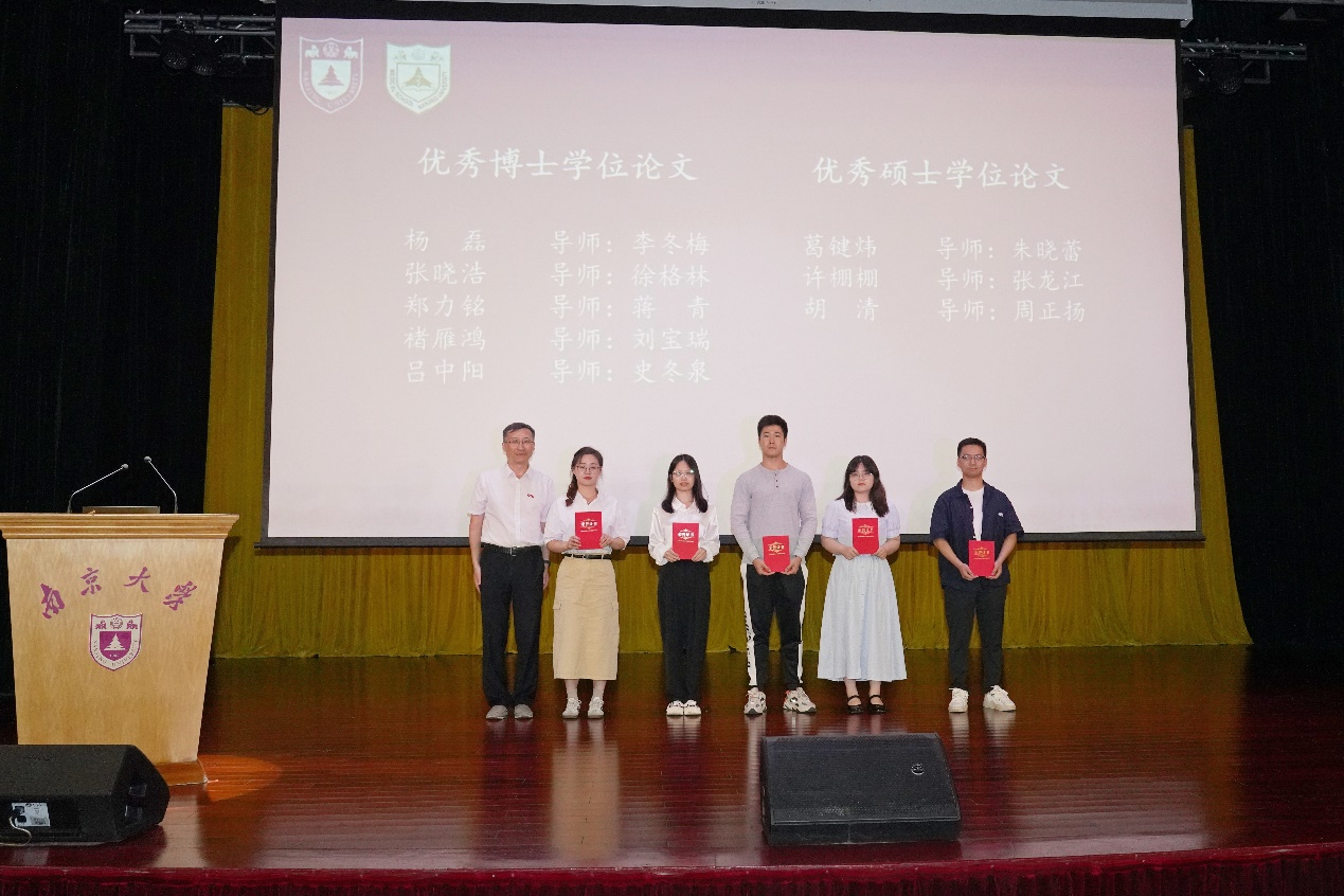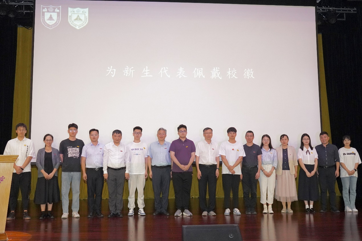 随后,与会领导和嘉宾为新生代表佩戴校徽。蒋青副院长宣读关于表彰2023年校优秀博士硕士学位论文作者及指导教师的决定和十大博彩娱乐平台 党委党内表彰决定。在对获奖教师和学生代表进行表彰后,2023级博士研究生沈韬带领全体新生进行庄严的医学生宣誓。最后,开学典礼在集体奏唱南京大学校歌中落下帷幕。