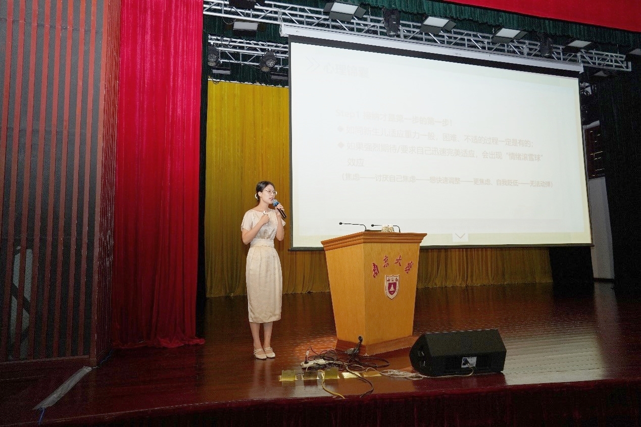 学校心理健康教育与研究中心徐枟老师谈到新阶段的心理适应问题。她指出,在研究生阶段,要学会接纳自己;建立起支持系统,学会利用资源解决困境;通过多种方法提升自我能力和认知。最后,王阿妮以成长为杰出的领导型临床学家和医学科学家为题,从生涯规划、学业发展、娱乐平台 重视、学校创新创业资源进行了分享和指导,并为本次入学教育做总结。