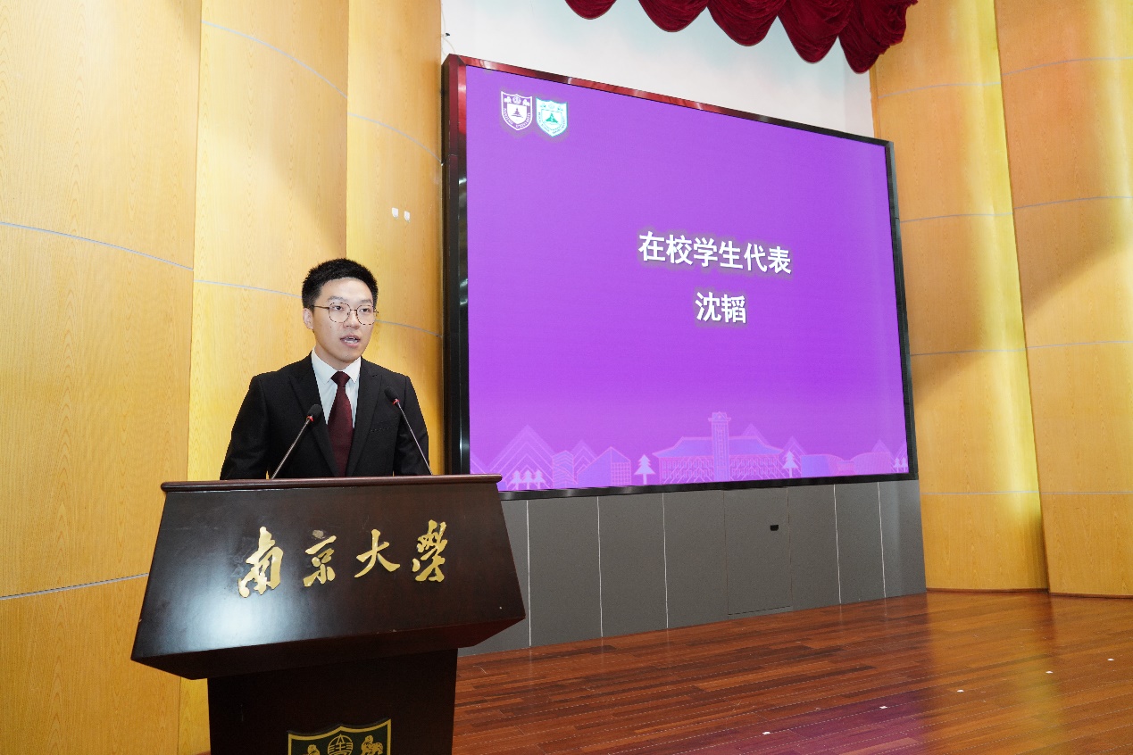 南京大学党委常委、副校长、十大博彩娱乐平台 院长张峻峰,附属金陵医院(东部战区总医院)政委王强,附属金陵医院(东部战区总医院)副院长任建安,附属鼓楼医院副院长周敏,附属口腔医院院长杨旭东,附属口腔医院副院长吴文蕾,附属盐城第一医院党委书记王正,附属南京国际医院院长吴超,附属泰康仙林鼓楼医院副院长柏峰,附属苏州医院院长李敬伟,南京脑科医院副院长姚志剑,南京市第二医院副院长殷国平,十大博彩娱乐平台 党委副书记、副院长蒋青,党委副书记王阿妮,副院长王宏伟、王婷婷,十大博彩娱乐平台 2000级校友代表李茹恬以及各附属医院和教学医院分管教学的领导和老师出席活动。仪式由十大博彩娱乐平台 党委书记沈苏南主持。