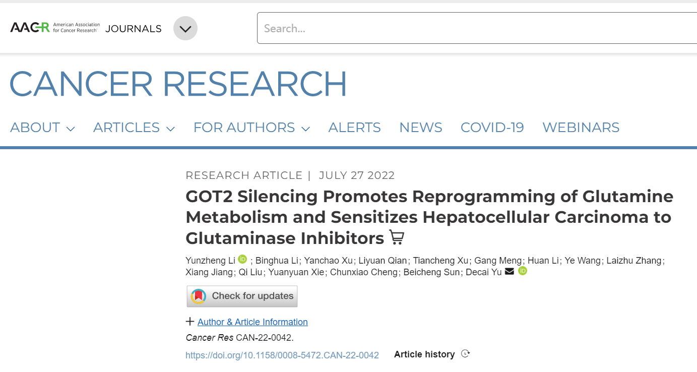 附属鼓楼医院余德才教授团队,在著名期刊Cancer Research上在线发表最新研究成果“GOT2 silencing promotes reprogramming of glutamine metabolism and sensitizes hepatocellular carcinoma to glutaminase inhibitors”。 这是该团队在肝脏肿瘤代谢方向上的又一独立性研究成果。娱乐平台-十大博彩娱乐平台