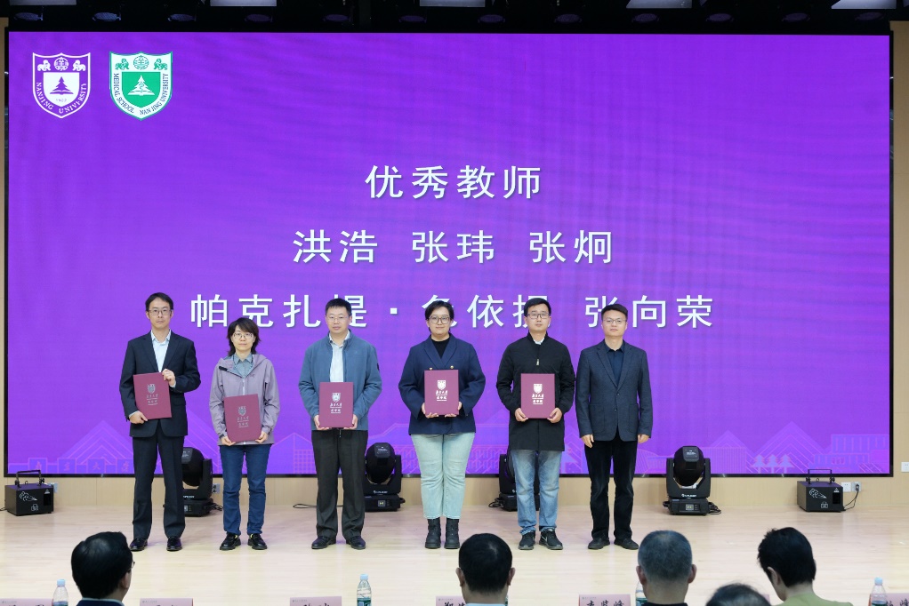 获奖教师代表洪浩发言。他指出,在医学快速发展的时代,作为教师要牢记育人初心,不断提升教学质量,加强科研创新能力,帮助学生打牢专业基础,拓展学科知识,培养更多具有国际视野、创新精神和社会责任感的杰出医学人才。