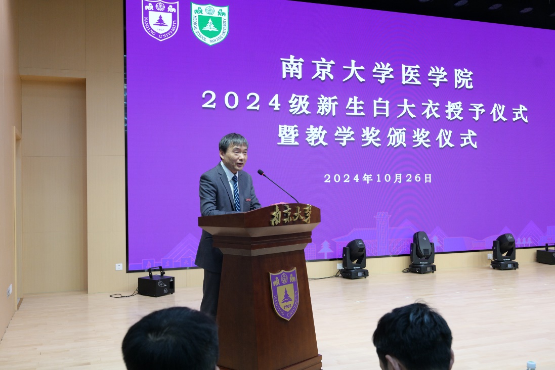 1026日下午,娱乐平台-十大博彩娱乐平台 2024级新生白大衣授予仪式暨十大博彩娱乐平台 教学奖颁奖仪式在鼓楼校区田家炳多功能厅顺利举行。