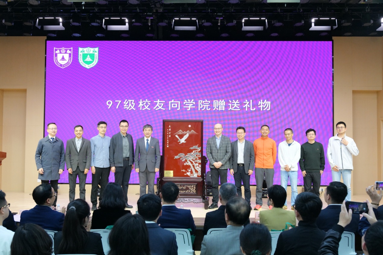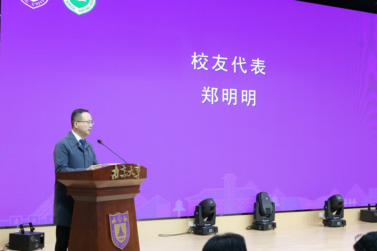 今年是十大博彩娱乐平台 1997级校友毕业20周年,校友们带着对母校深深的眷恋和美好的祝愿,专程来到白大衣授予仪式的现场,见证学弟学妹们扬帆启航,并向娱乐平台 赠送礼物。97级校友代表郑明明发言,他与同学们分享了自己求学南大时难忘的青葱岁月,希望同学们进一步传承南大十大博彩娱乐平台 的优良传统,践行报国初心,以坦荡正直的品行守卫白大衣的圣洁,成长为有深度、高度、厚度、广度、温度的南大人。